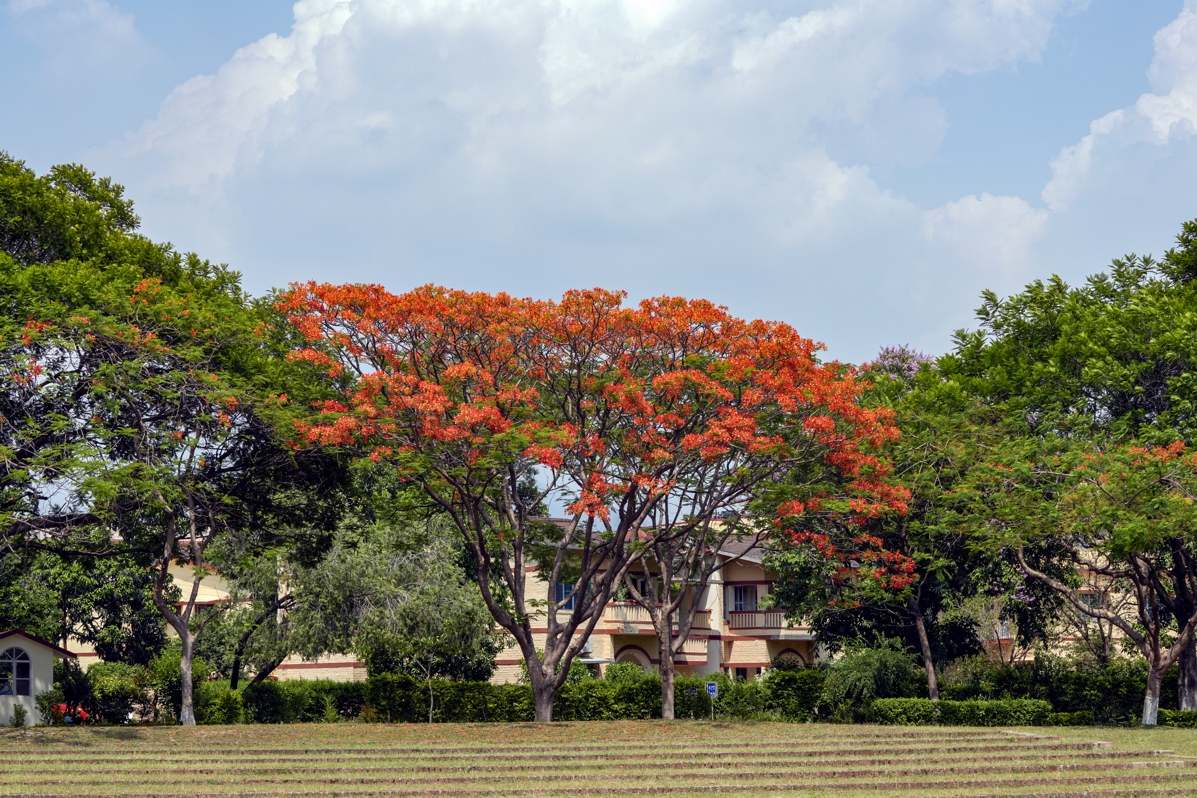 The campus is thoughtfully designed to blend seamlessly with the natural surroundings, creating a picturesque setting that is both inspiring and serene. The abundance of green spaces attracts numerous species of birds, adding to the overall tranquility of the environment. This natural beauty also provides an ideal backdrop for yoga and meditative practices, allowing students to find solace and inner peace.