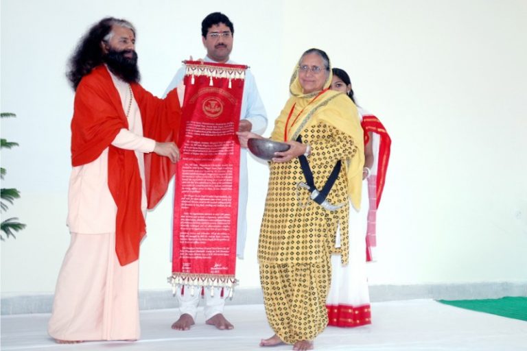 Received By : Ramesh Bhaiya and Vimala Behen, Founder, Vinoba Seva Ashram