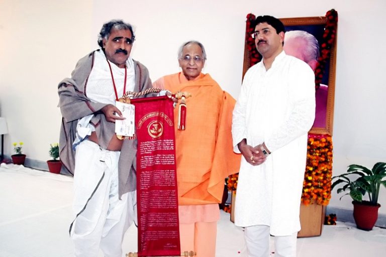 Received By : H.H. Swami Avdeshanand Ji Maharaj, Director Bharat Mata Mandir